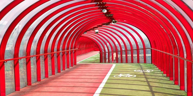 Na rota para bicicletas de Zoetermeer até Bleiswijk, na Província de Holanda do Sul, há três túneis construídos embaixo de autoestradas, entre os quais se destaca o da imagem, “Catedral Bike”.