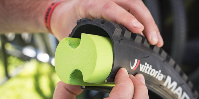 O fabricante italiano Vittoria lançou no mercado um novo acessório que promete reduzir a um nível sem precedentes os vazamentos causados por furos e rasgos em pneus de bicicletas, ao mesmo tempo em que aumenta a tração e a dirigibilidade da bicicleta.Desenvolvido para ser uma solução complementar ao uso de pneus sem câmara de ar (tubeless), o Vittoria Air-Liner é composto basicamente por um espaguete de EVA com uma densidade especial que não impregna o líquido selante em sua superfície. Tanto sua superfície superior quanto inferior possuem um chanfro, que permite sua compressão, facilitando assim sua instalação no interior do pneu.